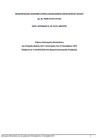 ΜΟΝΟΠΡΟΣΩΠΗ ΑΝΩΝΥΜΗ ΕΤΑΙΡΕΙΑ ΑΝΑΝΕΩΣΙΜΩΝ ΠΗΓΩΝ ΒΟΡΕΙΟΥ ΑΙΓΑΙΟΥ